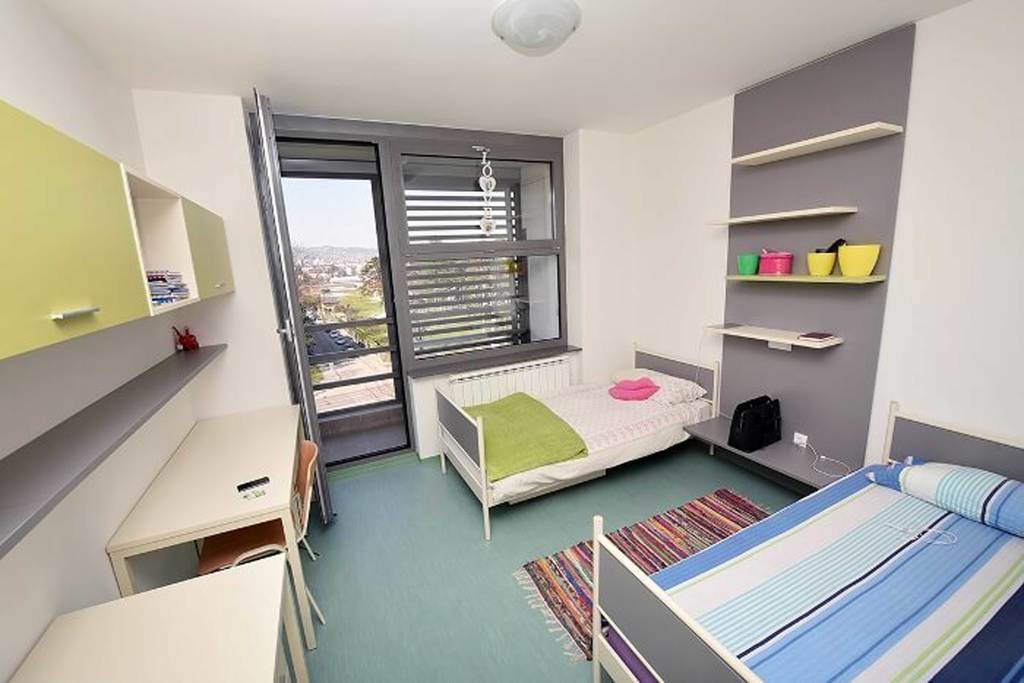 The Student Center "Nikola Tesla" provides accommodation and food services for students. The Student Center consists of four pavilions, two of which are located at the University Main Campus. The monthly fee for accommodation is 150 EUR. Rooms are either double or triple occupancy, each equipped with a bathroom, wardrobes, and desks.
